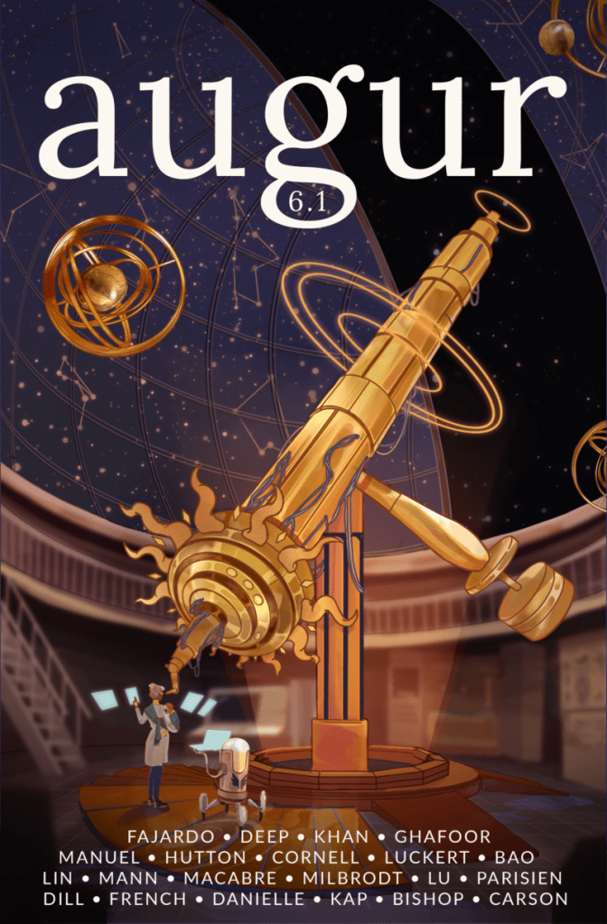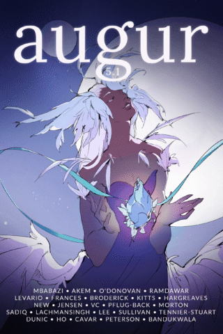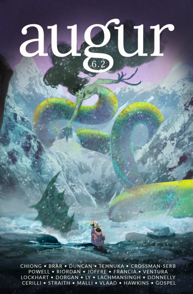 Proofreader of The Full Disclosure Iliad, by Jeff Wright, coming May 2026.Copyeditor of Mahogany Birds and co-copyeditor of Moon-Eaters and Monsoons in Augur issue 6.2.Copyeditor of The Zones of Heaven and Earth, in Augur issue 6.1.Copyeditor of Headphone Boy, in Tales & Feathers volume 2.Copyeditor of The Fish Whisperer’s Daugther and Tornadoes, Grief, and Poutine, in Augur issue 5.2.Copyeditor of Still, We Wait and Nun History, Nun Name, in Augur issue 5.1.Copyeditor of The Gifts of the Mango Tree, in Augur issue 4.2.